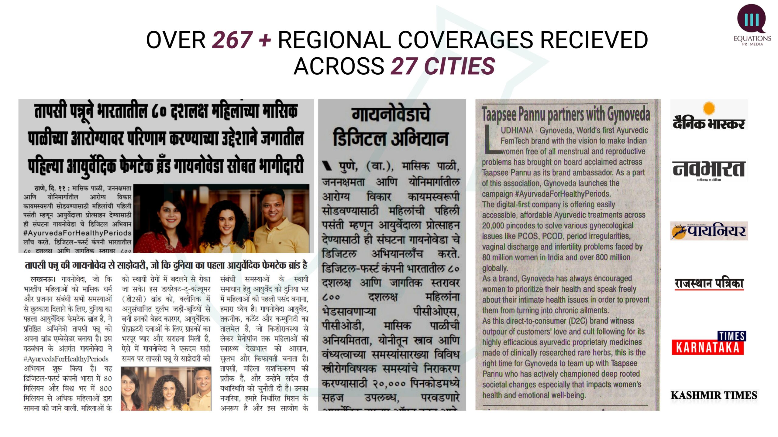 -Launched digital campaign #AyurvedaForHealthyPeriods PAN India across 27 regional markets with top Tier I regional media like Punjab Kesari, Dainik Bhaskar, Rajasthan Patrika covering the campaign